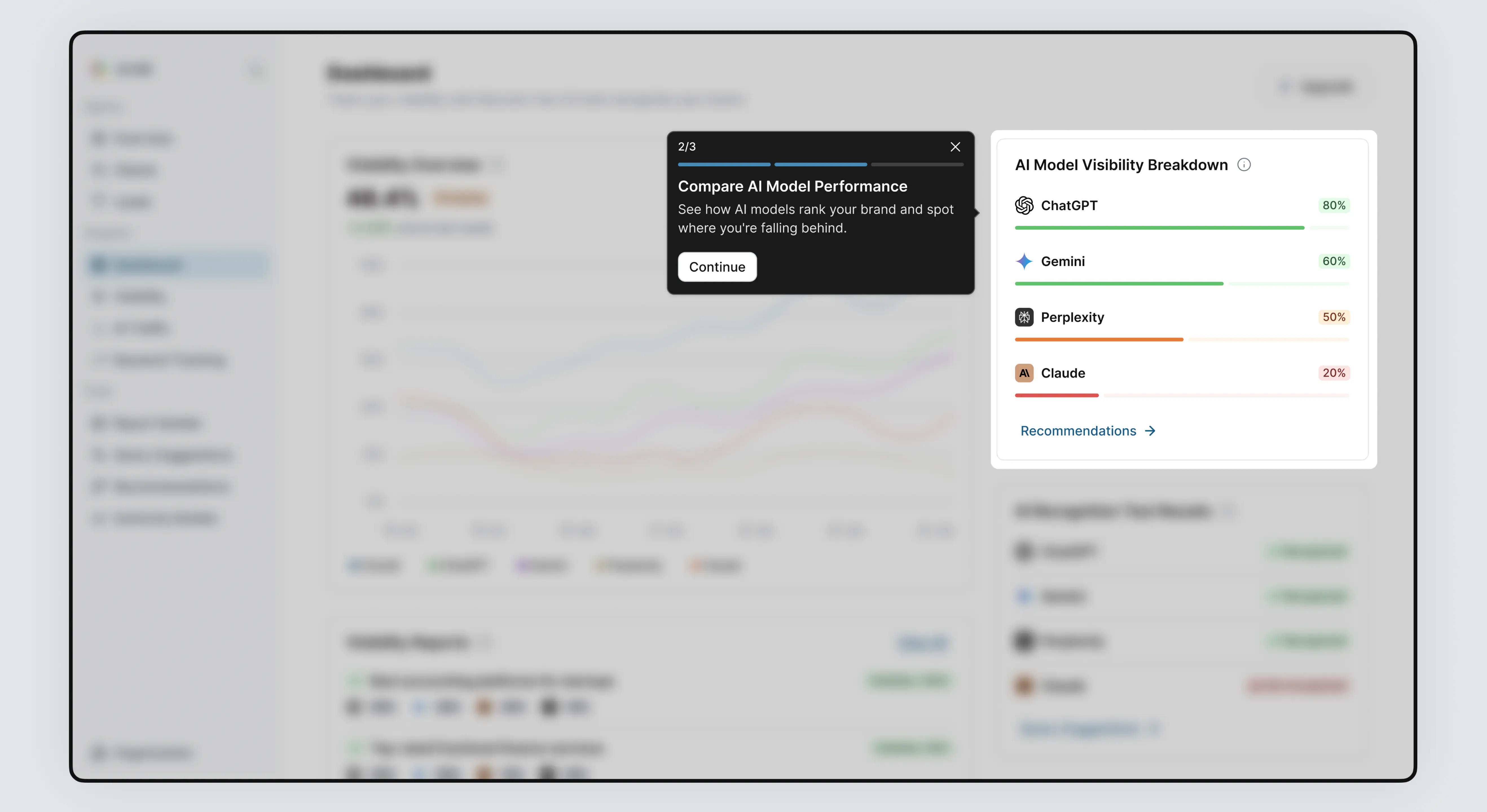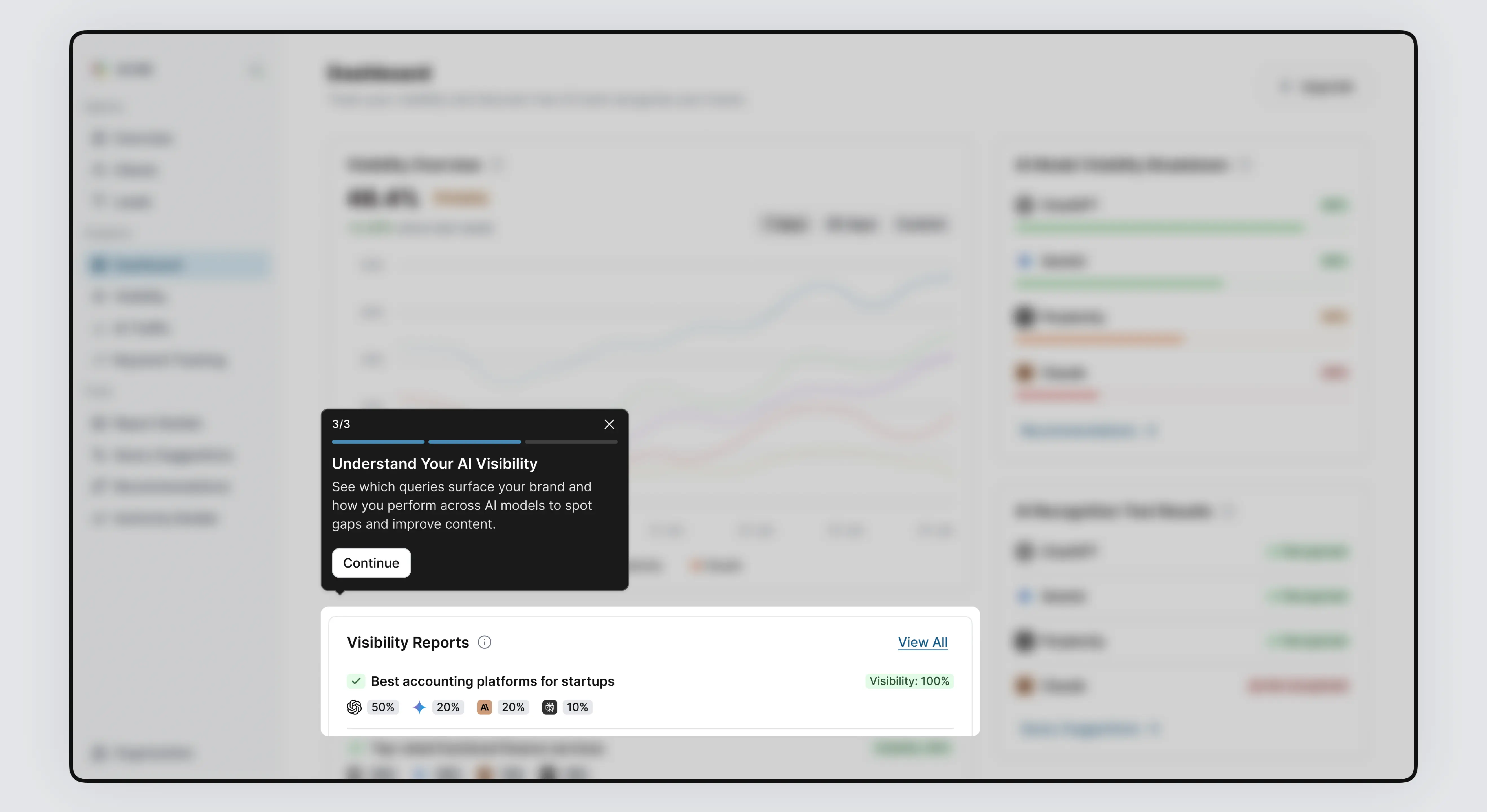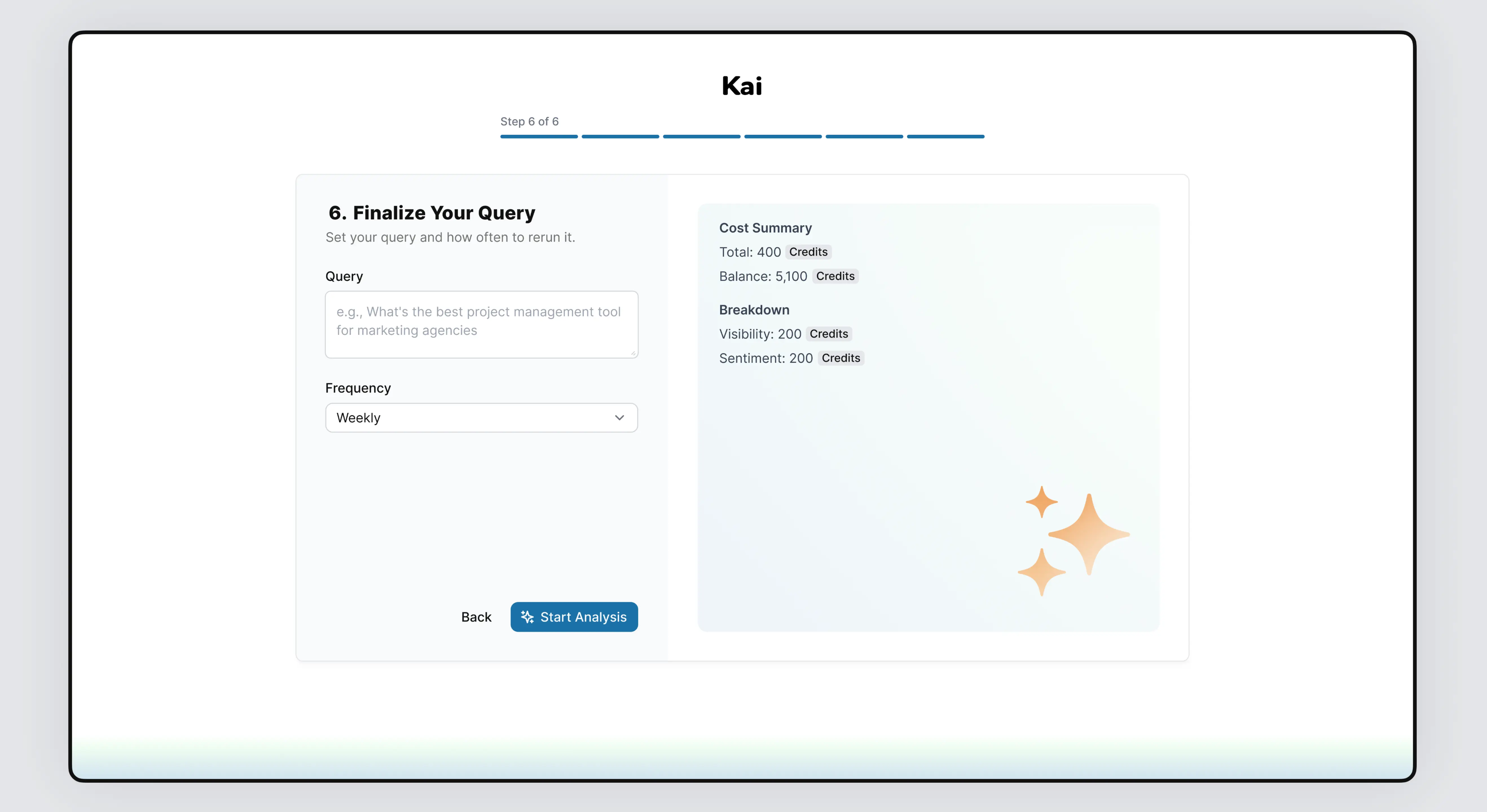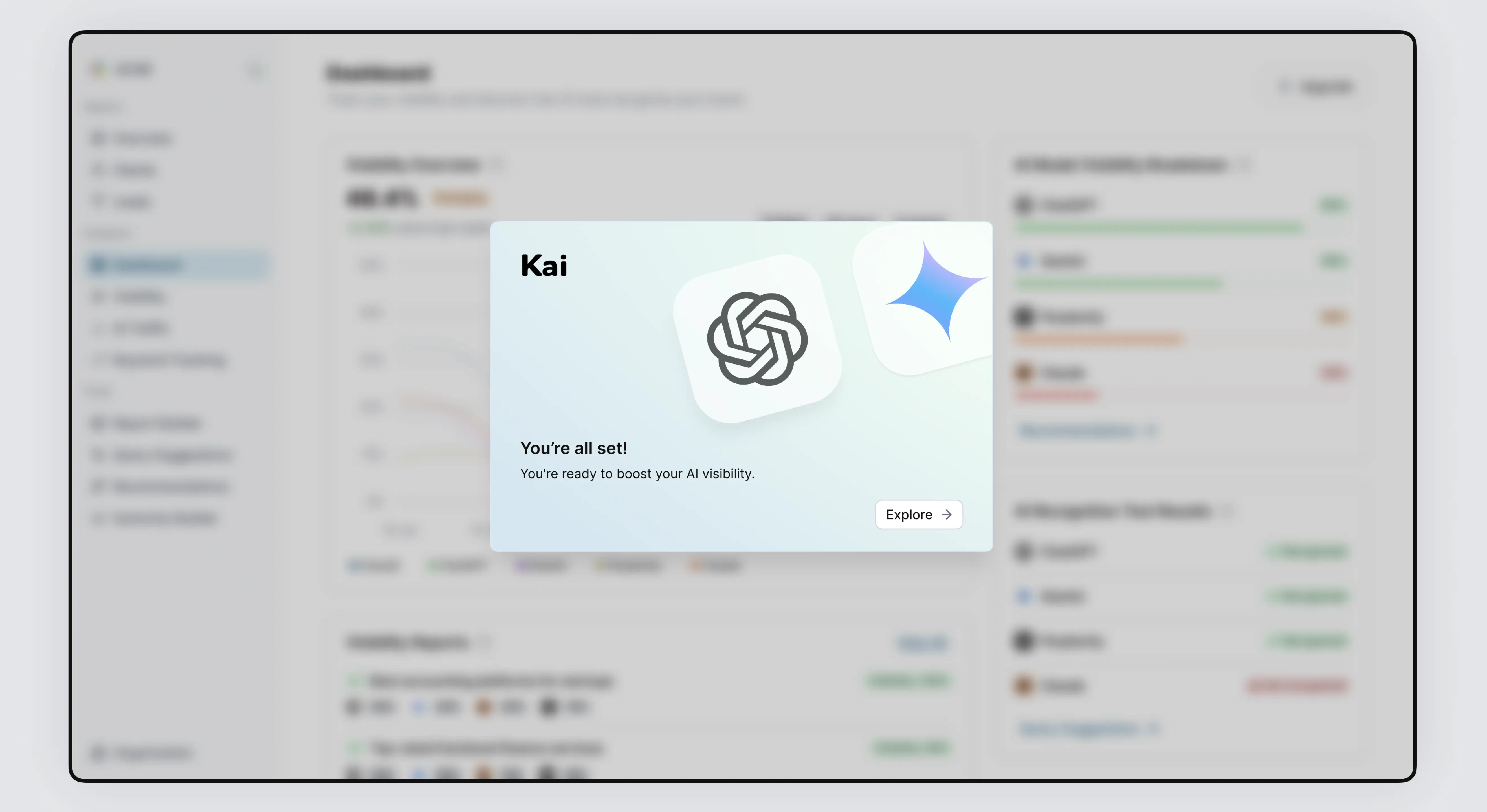 I led the end-to-end design and development of Kai, an AI SaaS platform that helps brands track their visibility across leading AI models like ChatGPT, Gemini, Claude, Copilot, and Grok. As the sole product designer, I conducted UX research, mapped user flows, built a reusable design system, and created high-fidelity designs. I also developed the entire front-end using Next.js (React), Tailwind CSS, and TypeScript, delivering a fully coded and dynamic UI with mock data, prepared for backend integration. I worked closely with the CTO and the founder to align on data structure and ensure straightforward integration.