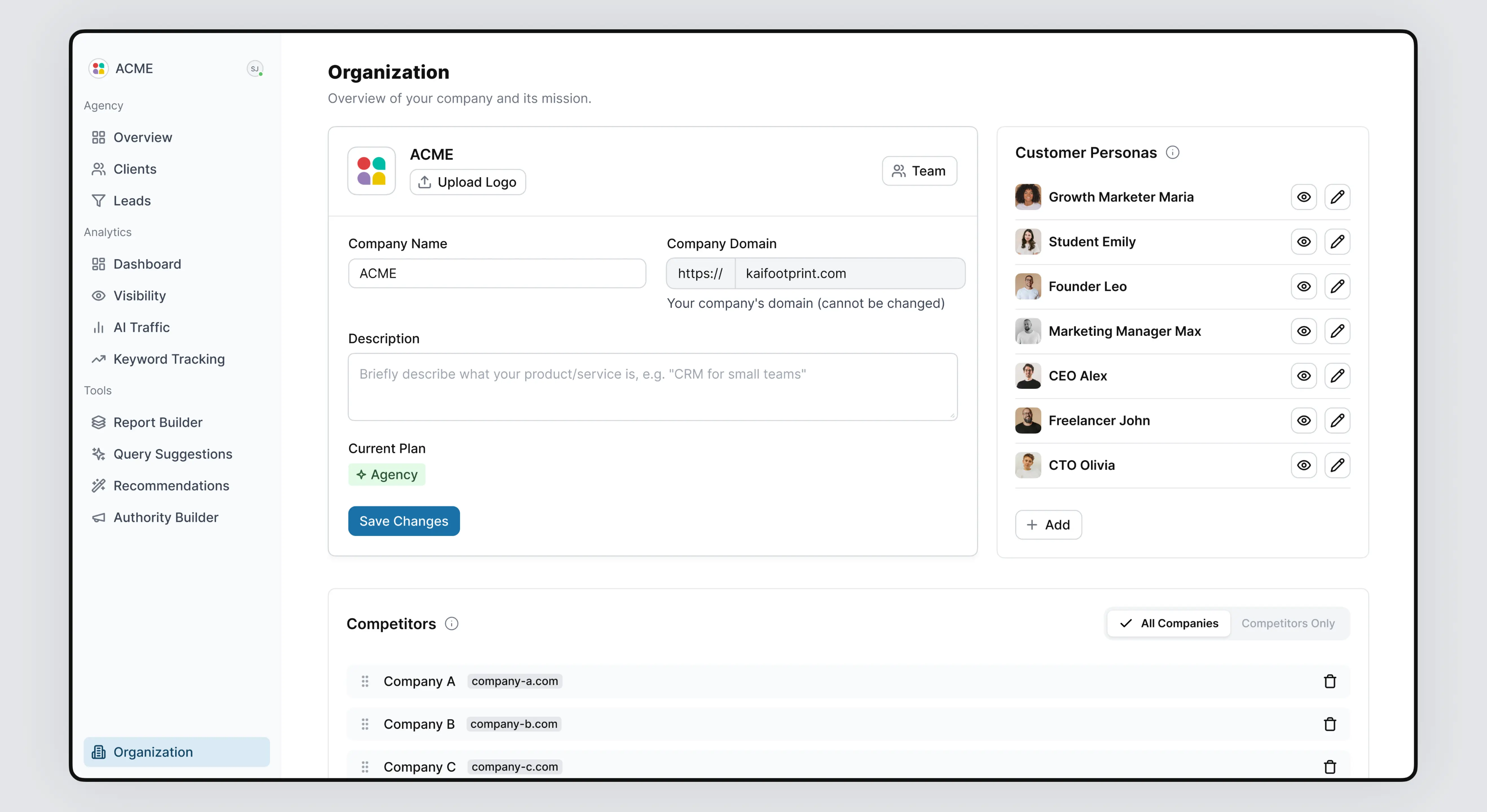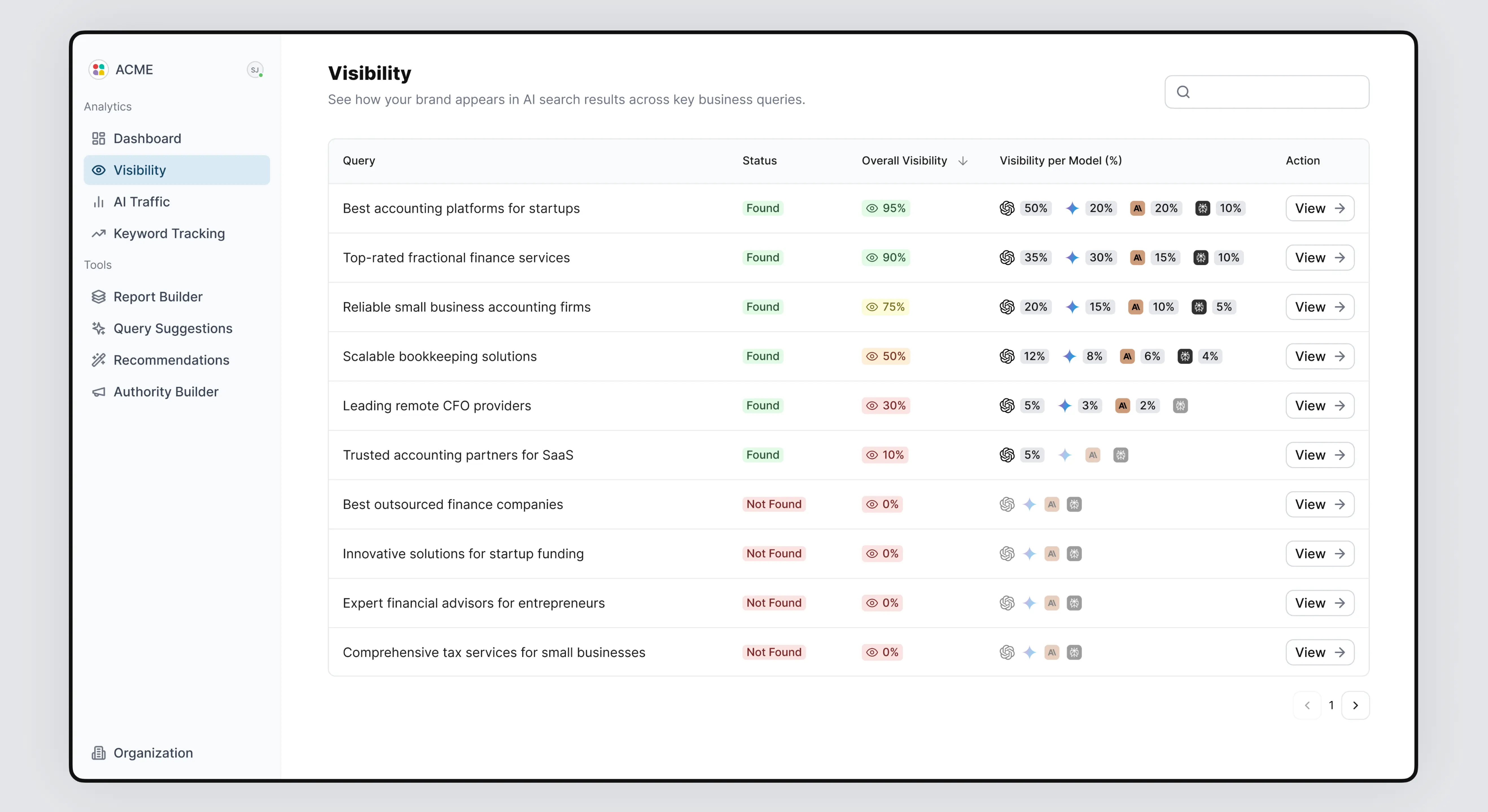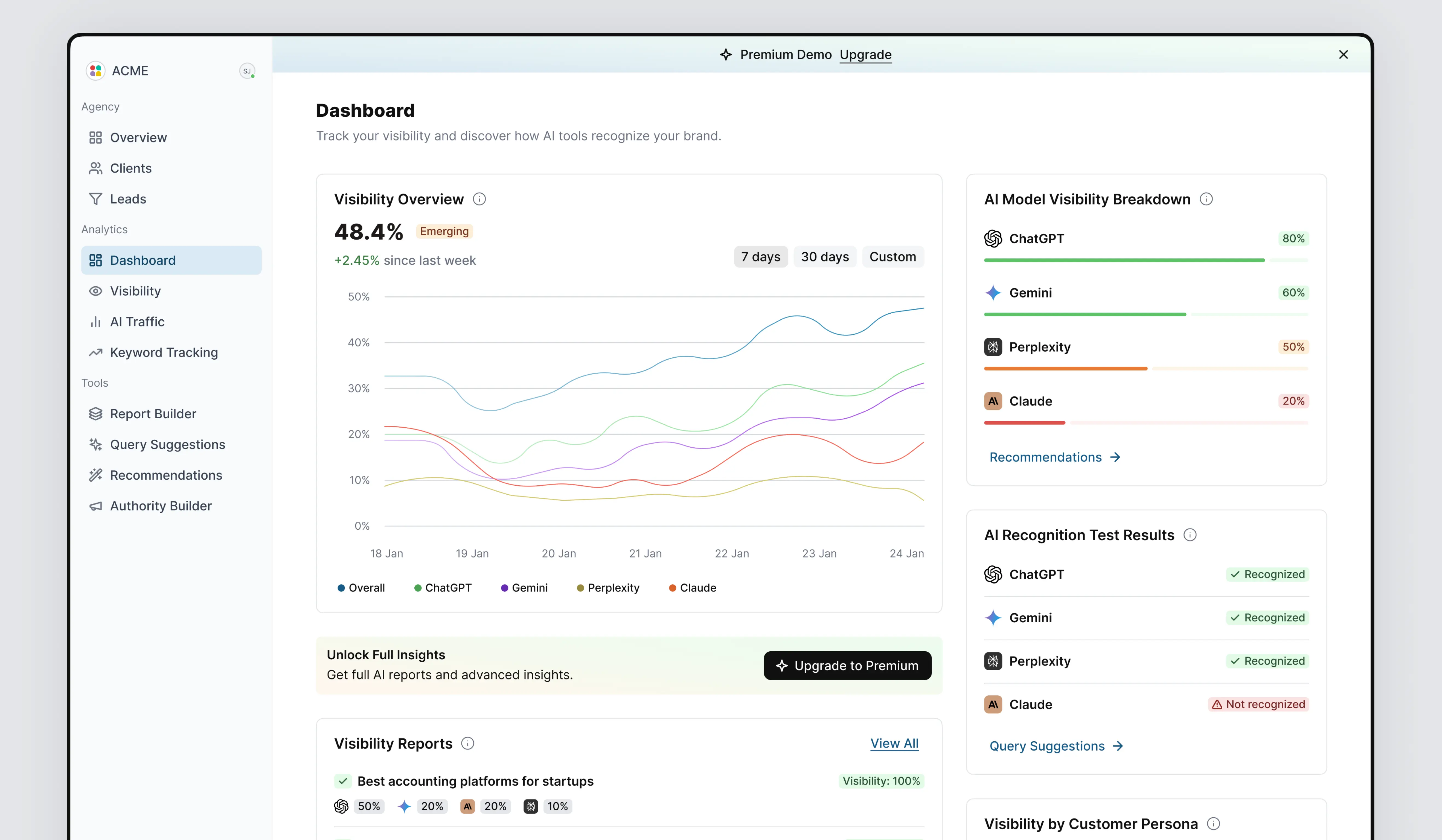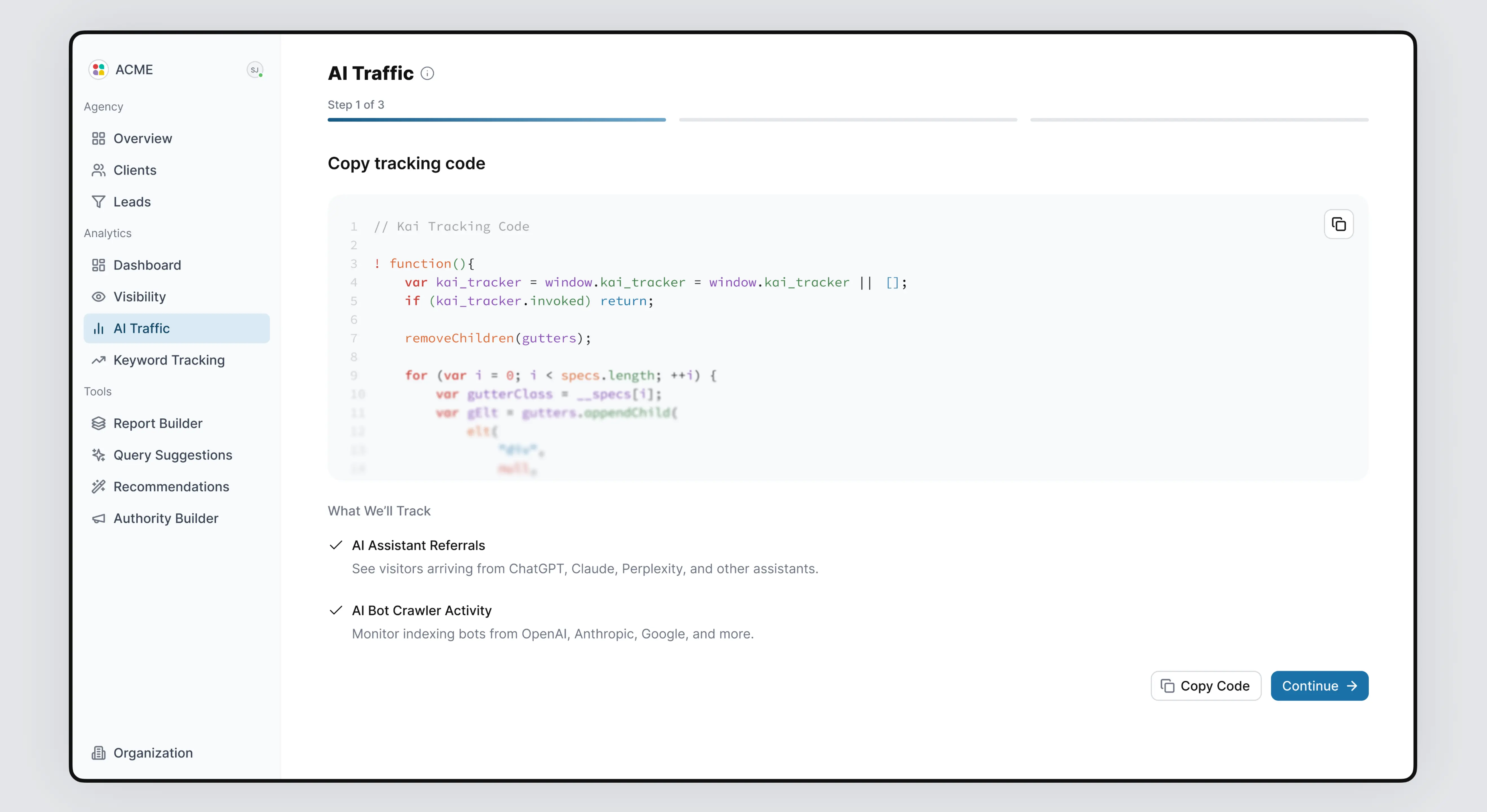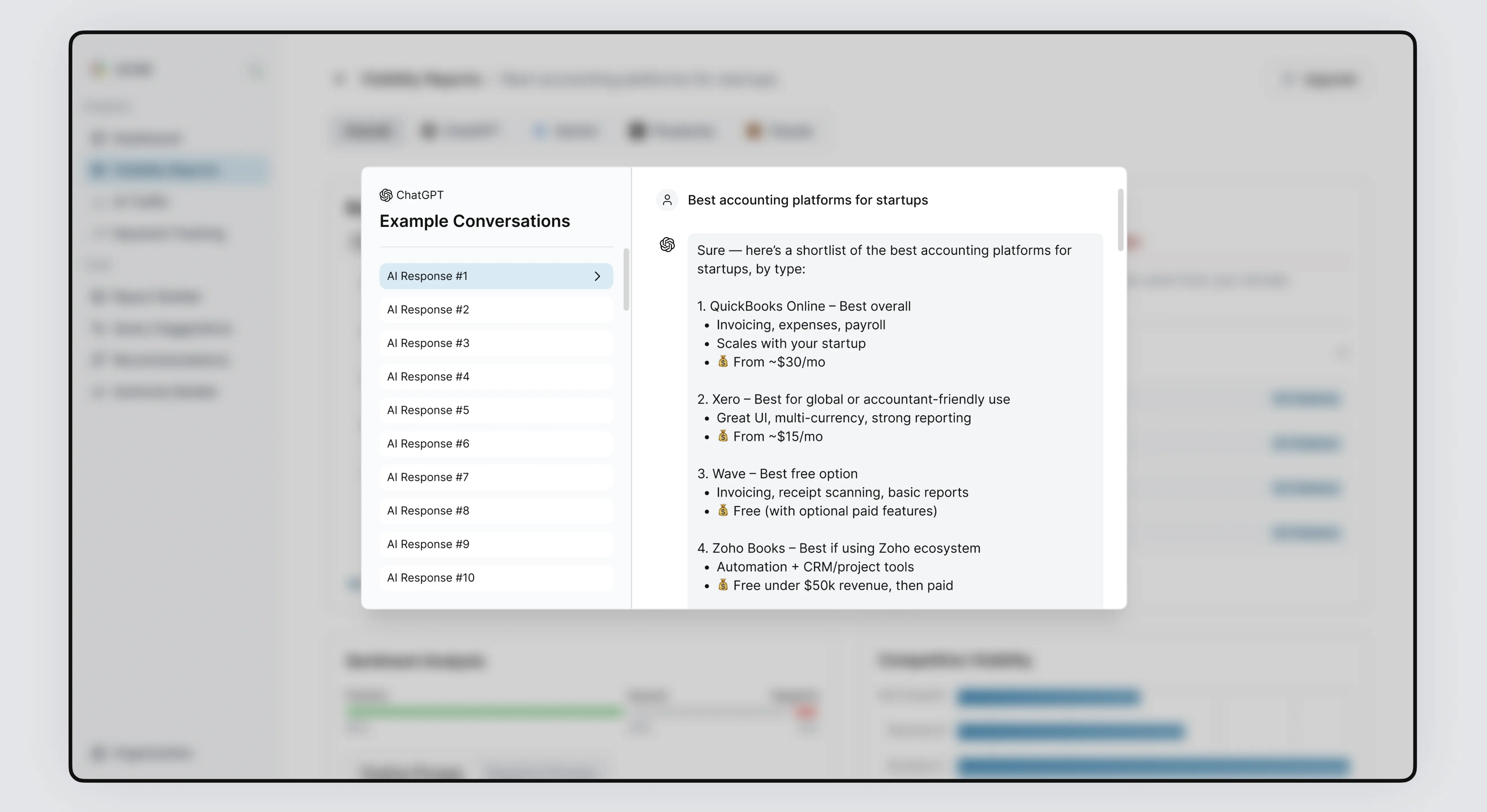 I led the end-to-end design and development of Kai, an AI SaaS platform that helps brands track their visibility across leading AI models like ChatGPT, Gemini, Claude, Copilot, and Grok. As the sole product designer, I conducted UX research, mapped user flows, built a reusable design system, and created high-fidelity designs. I also developed the entire front-end using Next.js (React), Tailwind CSS, and TypeScript, delivering a fully coded and dynamic UI with mock data, prepared for backend integration. I worked closely with the CTO and the founder to align on data structure and ensure straightforward integration.