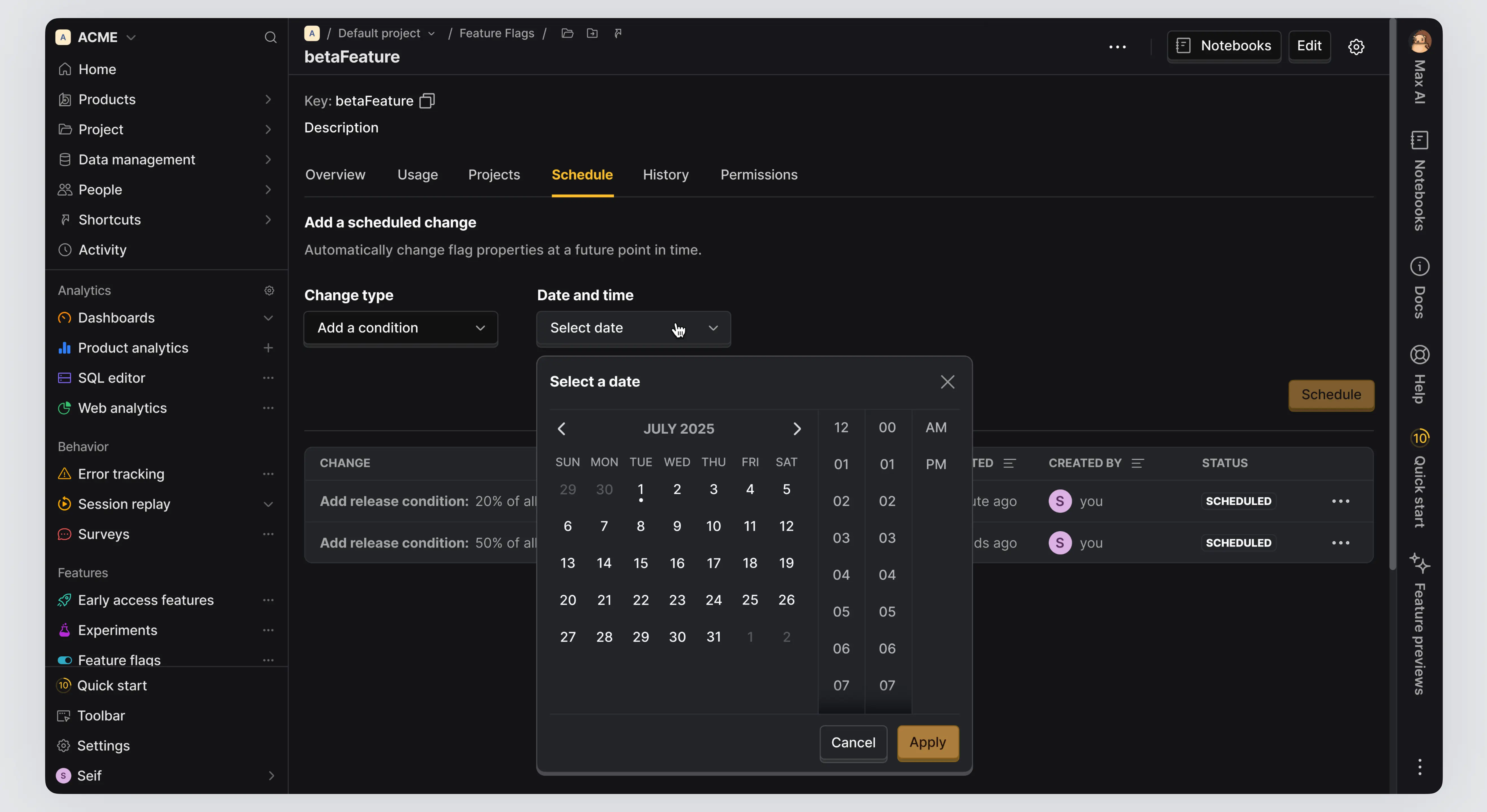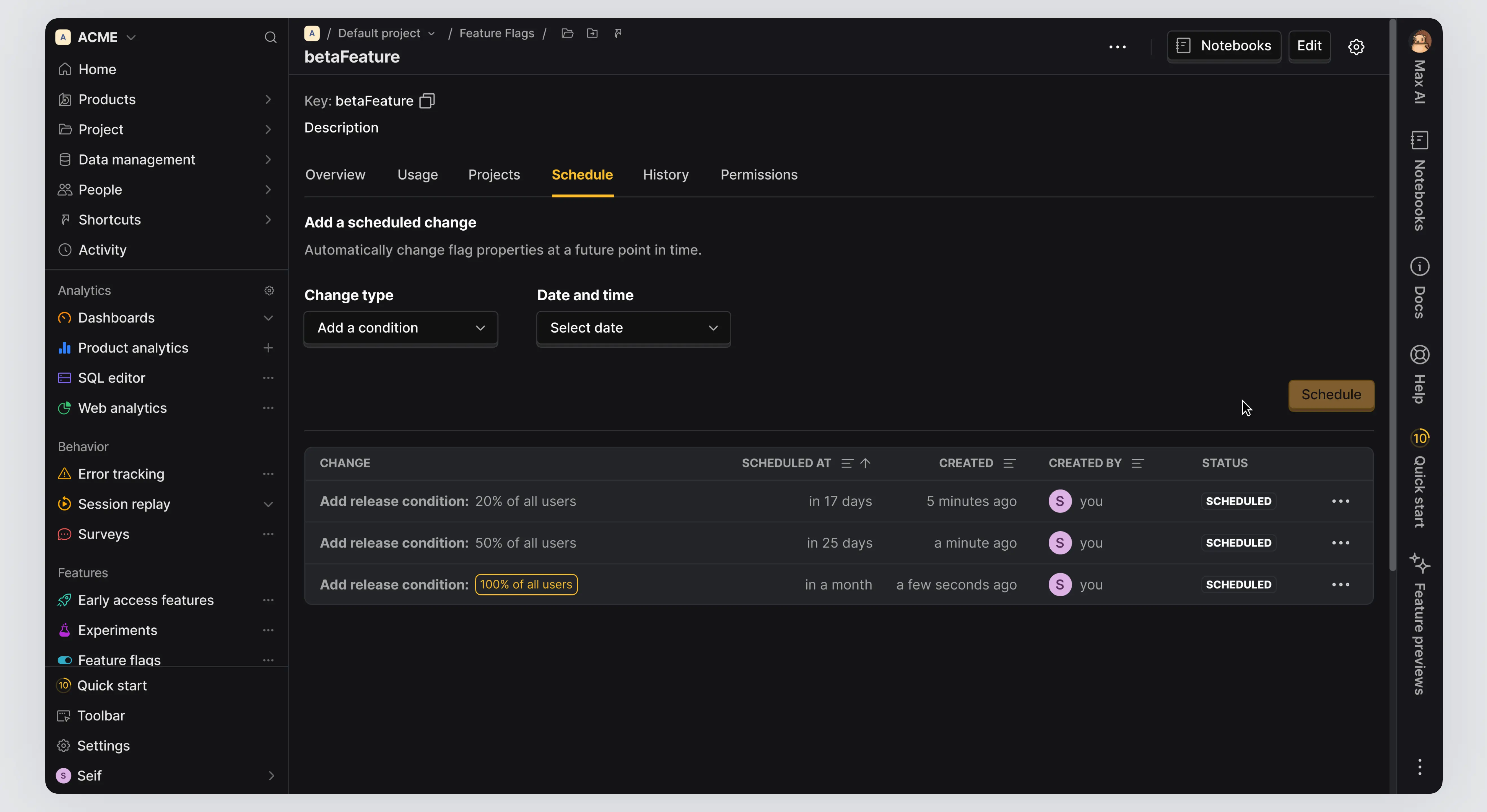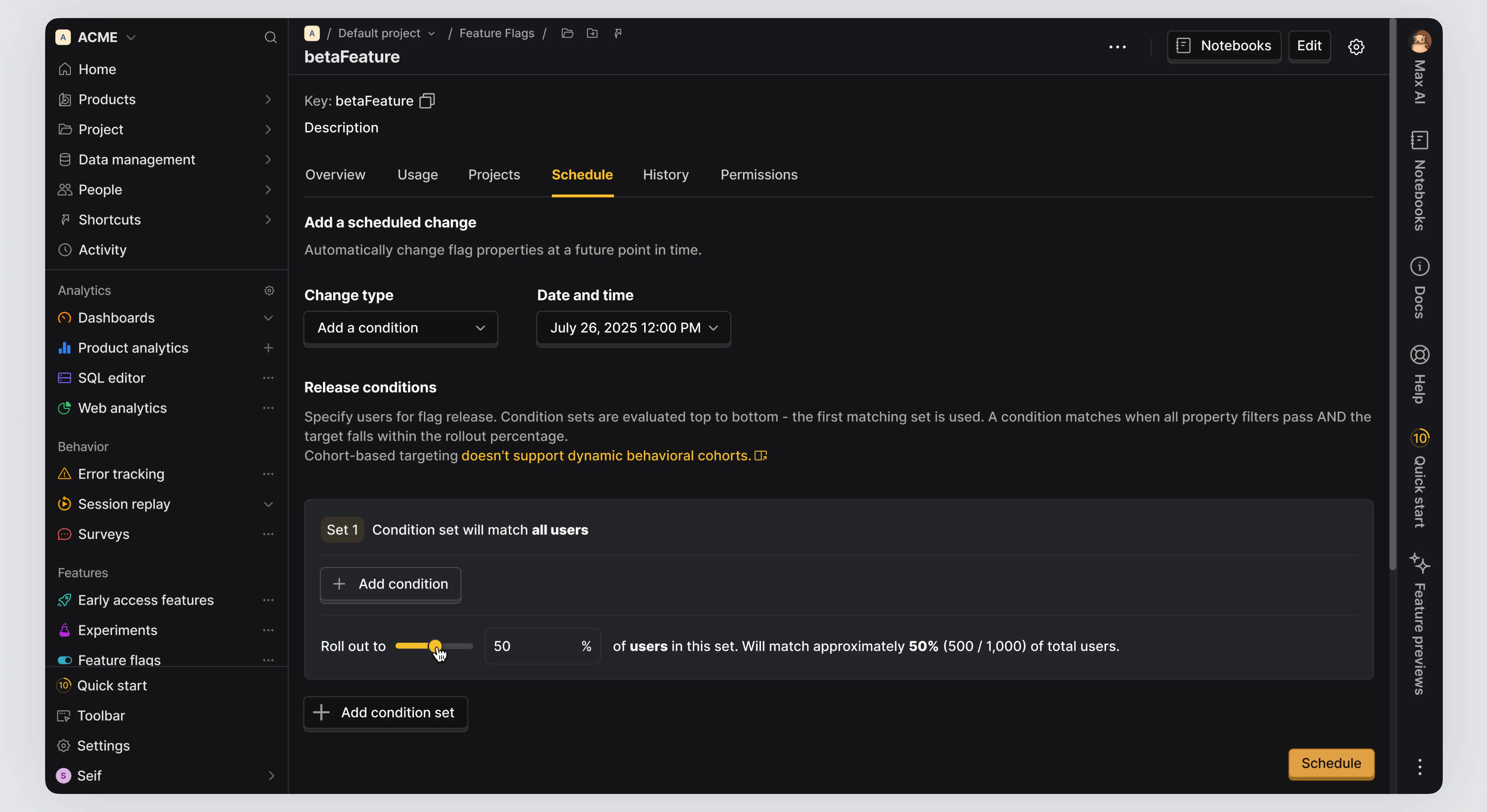 I addressed key usability challenges in billing, feature flag scheduling, and tab navigation by designing scalable interfaces that clarified pricing, reduced cognitive load, and removed friction. My design solutions were shaped by real user feedback and refined through interactive prototypes, directly improving how product and engineering teams deliver features.